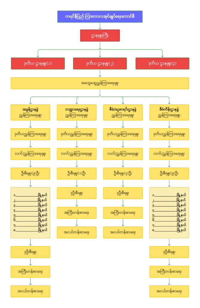 ကြားကာလအတွင်း အရေးပေါ်ဖော်ဆောင်ရမည့် ကရင်နီပြည်၏ ဘဏ္ဍာငွေကြေး စီးဆင်းမှုကို စနစ်တကျစီမံခန့်ခွဲနိုင်ရန်၊ လိုအပ်လျက်ရှိသော စီမံကိန်းများကို အကောင်အထည်ဖော် ဆောင်ရွက် နိုင်ရန်နှင့် အခွန်ငွေများကို စနစ်တကျကောက်ခံစီမံနိုင်ရန်အတွက် စီမံကိန်း၊ ဘဏ္ဍာရေးနှင့် အခွန်ဌာနကို ၂၀၂၃ ခုနှစ်၊ စက်တင်ဘာလ (၇) ရက်တွင် ဖွဲ့စည်းခဲ့သည်။